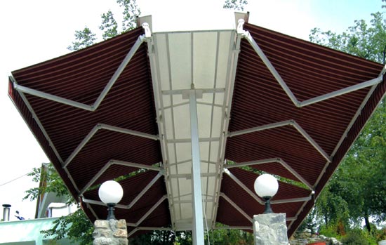 Körüklü sistem tente modelimiz estetik bakımdan oldukça göze hitap etmektedir.Bu tente sistemleri özel olarak kumaşından demir aksamına kadar üretilmektedir.