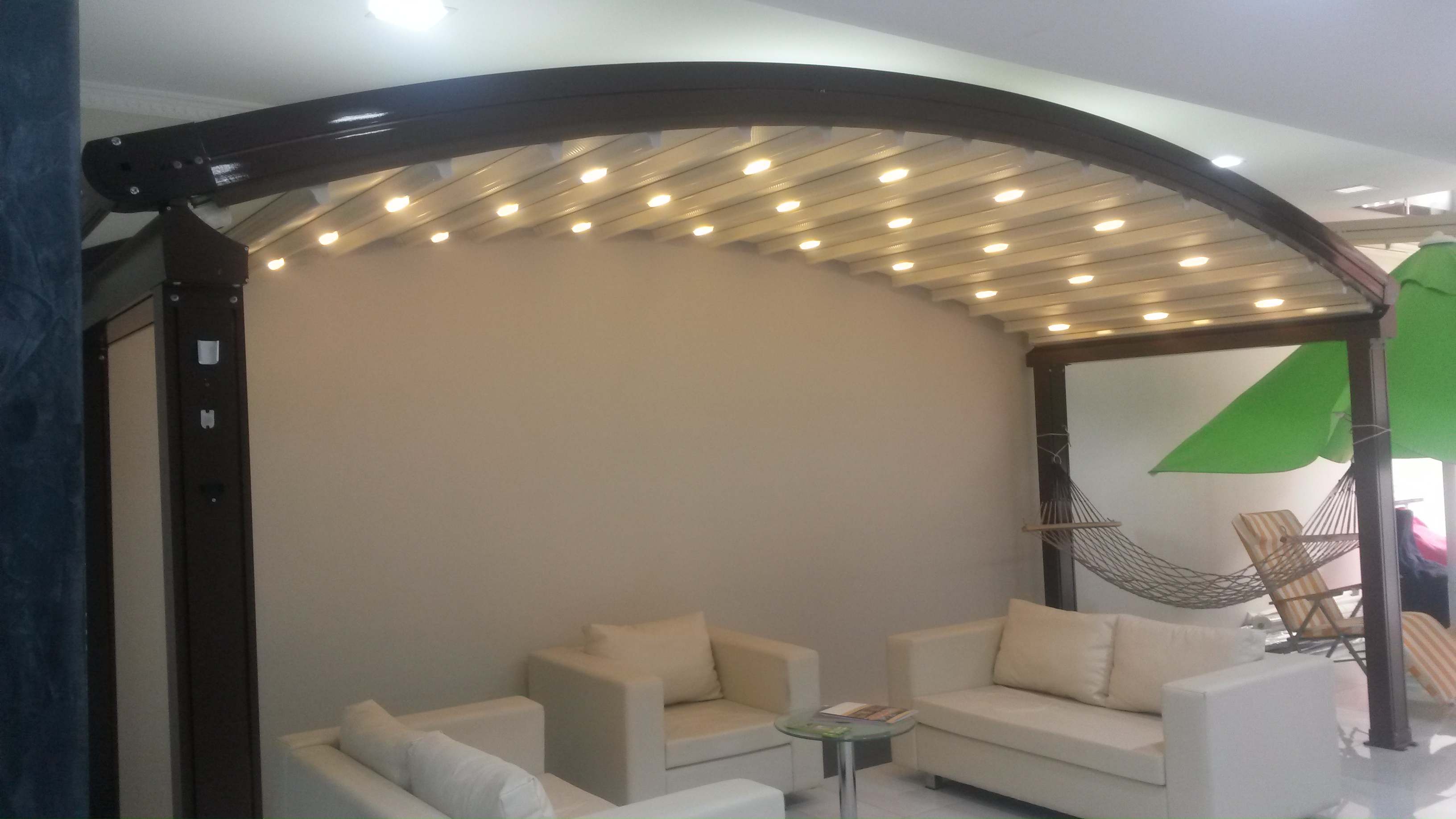 Otomatik kumandalı ve ışıklı sistem yeni model tente sistemidir. Bu sistem ışıksız da üretilmektedir. Avrupa Membran ve Blackout Kumaş kullanılarak imal edilmektedir. Üzerinde yarım metre kar yükünü taşıyabilir. Yüksek esen rüzgara karşı oldukça dayanıklıdır. Cafe ve restoran alanları için olmazsa olmazdır. Kumaşın kendi kendini temizleme özelliği mevcuttur. Ürün Tüm İstanbul da ve Türkiye’de montaj sorunu olmadan tarafımızdan yapılmaktadır.